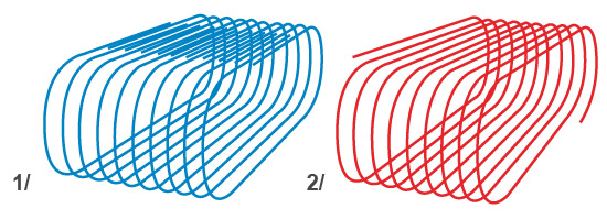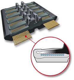 Interlocking – A kovácsolt láncszemek speciális reteszei nagyobb oldalirányú merevséget biztosítanak és csökkentik a szalag leesésének kockázatát