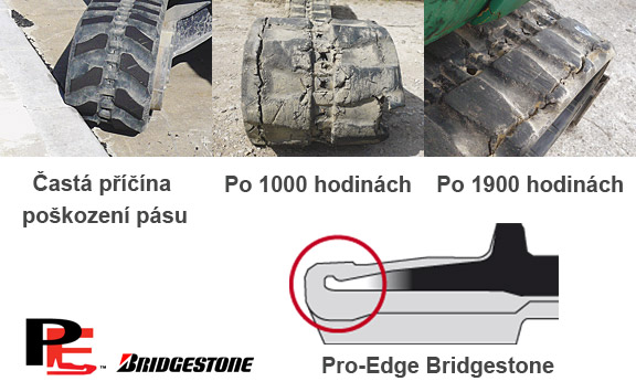 tuskók vagy más kemény és éles tárgyakba ütköznek. Ilyen helyzetekben a futófelület eleme meghajlik, és a gumi megsérül. Ezáltal a futófelület öntöttvas elemeinek acélszálai elválnak egymástól. A Bridgestone innovatív PRO EDGE megoldást fejlesztett ki, hogy megakadályozza ezeket a sérüléseket. A PRO EDGE technológia a szalagszelvény lekerekített szélének (csökkenti a szalag ezen részének feszültségét) és a szélén megnövelt gumi mennyiségének kombinációján alapul. Ez jelentősen növeli a Bridgestone gumi szalag szélének ellenállóképességét.