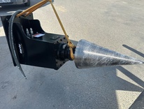 hidraulikusan működtetett kúpos faaprító néhány másodperc alatt elbánik a fatörzsekkel, tuskókkal és kemény fával is.