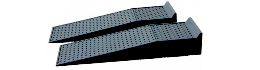 Robusztus és ellenálló műanyag felhajtók – ideális megoldás járművek, négykerekű járművek és kerti gépek biztonságos felhajtásához.