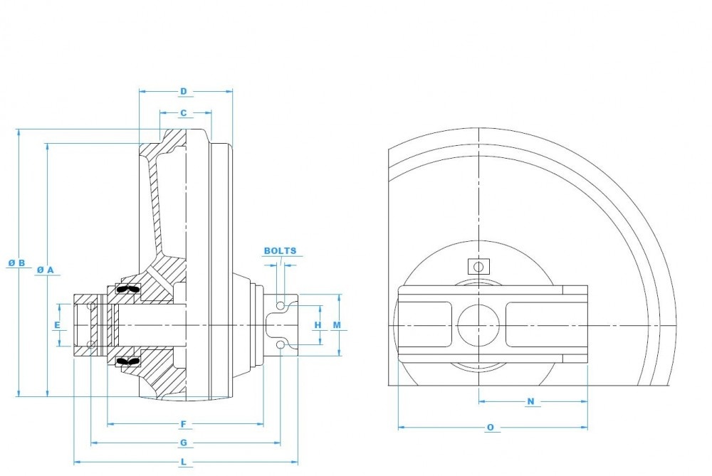 A vezető-feszítő kerekek minibagerekhez, kotrógépekhez és egyéb lánctalpas gépekhez feszítő egységgel is szállíthatók.
