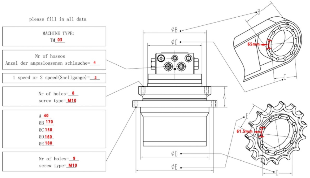 Dvourychlostní hydromotor v nové, vylepšené verzi pro stavební stroje. Zařízení bylo vyrobeno za pomoci nejmodernější technologie, která zaručuje odolnost a spolehlivost. Použití našeho hydromotoru vám umožní vyhnout se nákladným prostojům vašeho stroje a nepříjemnostem spojeným s opravou nebo výměnou. Proč si zvolit náš hydromotor?Každý hydromotor je vybaven dvěma přepadovými porty. Tím se stává univerzálním zařízením a lze jej namontovat na levou i pravou stranu vašeho rypadla. Možnost zvolit si přepadový port dále usnadní manévrování s hydraulickými hadicemi. Naše hydromotory mají naprosto bezproblémové šroubování hnacího kola. Pokud Vaše původní hnací kolo není s naším hydromotorem kompatibilní, rádi Vám doporučíme vhodnou alternativu. Všechny hydromotory jsou vybaveny velmi silným a rychlým převodem. Během instalace dbejte zvýšené opatrnosti, aby nedošlo k záměně se zpátečkou. Mohlo by tak dojít k selhání hydromotoru. |